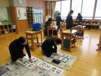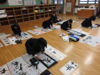 「書き初め」 1・2年生は硬筆、3年生以上は毛筆です。