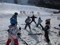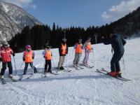 「スキー授業」 3学期前半の体育の授業はスキーをおこなっています。今シーズン2回目のスキー授業でみんなはりきっています。地域の方々も講師として、指導してくださっています。