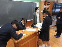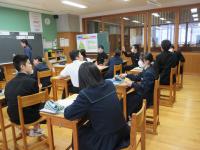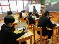 中学1年生は、実際に石川県内であったSNSでのトラブルを事例として、どんなことがいけないことなのか、何に気をつけないといけないかについて自分ごととして考え、意見を伝え合っています。