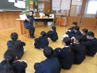 「おはなしの会」 今年度さいごの読み聞かせでした。お世話になったボランティアの方々へ、子どもたちがお礼のメッセージを贈りました。