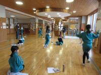 「なわとび集会」 5・6年生が技を披露したり、縦割り班で長縄に挑戦したりしました。また、これまでに練習した技の回数をペアで数え合い、カードに記入しました。
