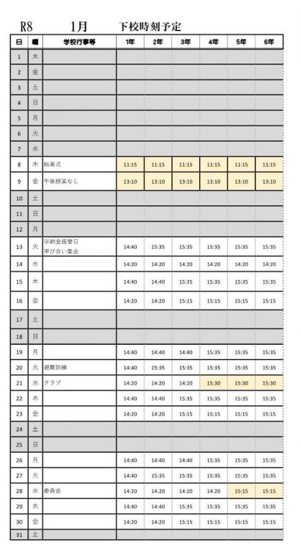 〇1月の下校時刻を掲載しました。(12/19)