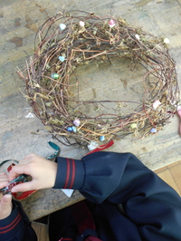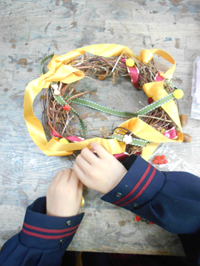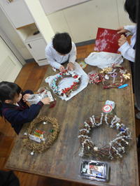 1年生が、工夫いっぱい夢いっぱいの自分だけのクリスマスリースを作りました。今年のクリスマスはこのリースを飾って、一段と思い出深いクリスマスになりそうですね。