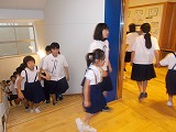 今回は、中学生に小学校1・2年生の手を引いてもらい、一緒に階段を上がって避難しました。