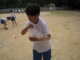 7月3日(火)1年生は生活科の時間に「みずであそうぼう」という学習で、シャボン玉を楽しみました。