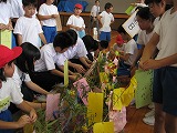 その後は、グループに分かれて、自己紹介と七夕の短冊の紹介、そして短冊の飾り付けを行いました。