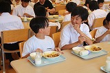 最後にランチルームで仲良しランチ。いろいろな学年が入り交じって、楽しく給食を食べました。