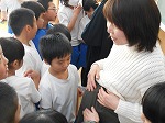 お話を聞いた後は、お母さんの大きなおなかを手でなでたり、おなかに耳をあてたりして、おなかの中の小さな命を感じていました。