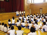 9月2日(金)の昼休みに、あいさつ集会を開きました。