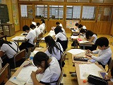 9月5日(月)から行うあいさつ運動の目標を、「海友会」の班ごとに集まって話し合いました。