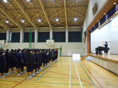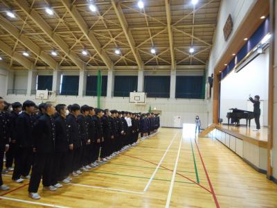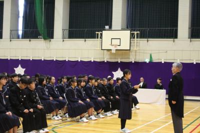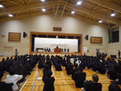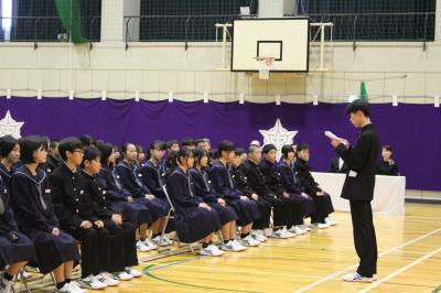 年生は、2学期の充実した学習や学校行事を振り返り、自分自身や学年全体の成長を確認しながら、今後のさらなる成長につなげていこうという話がありました。