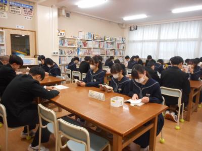 12月10日放課後、図書委員会主催による ビブリオバトル が開催されました。今回は教師1名を含む4名のバトラーが参加し、聴衆全員による投票で審査が行われました。