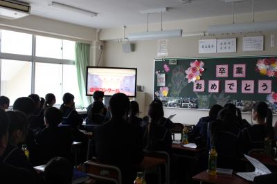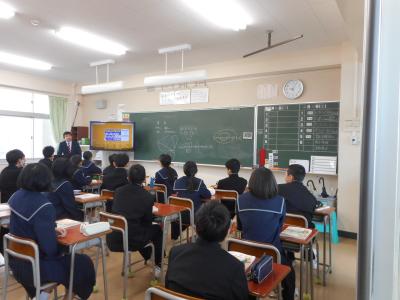 3年生は、総合的な学習の時間に「国際理解」について学んでいきます。 今日は、担当の教員が身近な例を交えながら、生徒たちと対話を通して今後の学習の進め方について説明しました。 生徒達は「もしも世界が100人の村だったら」という動画を真剣な表情で視聴し、世界の現状について考えるきっかけを得ました。