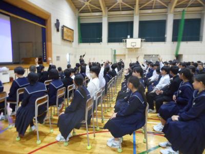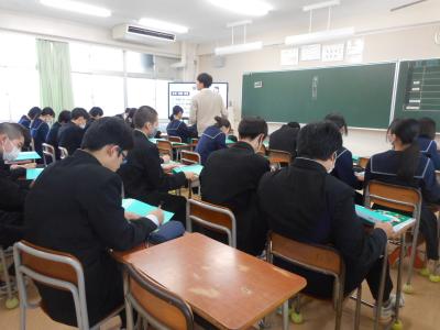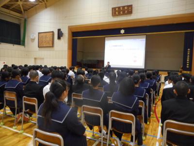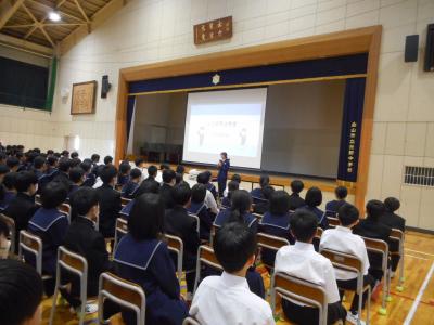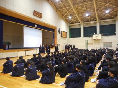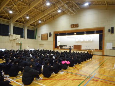 3年生に対して、今後の進路指導についての学年集会がおこなわれました。中学校卒業後の進路について悩むこともあると思いますが、家の人や先生に相談し、一人一人にとって一番の進路選択をしてほしいと思います。