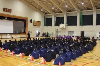 3年生は、これから多くの生徒が高校受験に向けて勉強に励む時間が増える中、冬休みだからこそできる家族の手伝いや語らいの時間を大切にしていこうという話がありました。