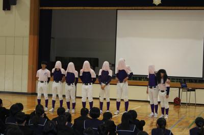 明日から始まる運動部新人大会の激励会がありました。先日の運動会で応援リーダーを務めた3年生が力強い応援で1・2年生を激励しました。