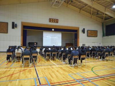 講演では鈴木氏より、「人生の中でうまくいかないときがあっても、決してあきらめず前を向いて進んでほしい」「夢を持ち、その夢に向かって歩み続けてほしい」など、熱いメッセージを語っていただきました。生徒たちは真剣な表情で耳を傾け、それぞれが自分の将来について考える貴重な機会となりました。