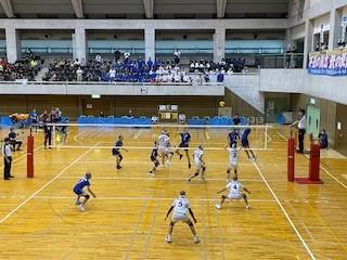男子バレーボール部の全国大会の試合結果を報告します。23日はグループリーグ戦で岩手県宮野目中学校にセットカウント2-0で快勝しました。24日は決勝トーナメントで大阪府 昇陽中学校と対戦しました。第1セット18-25,第2セット20-25で惜しくも敗退しました。