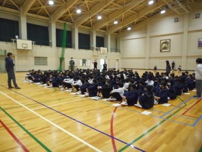 本日の午後、3年生は球技大会を実施しました。男女それぞれ、バスケットボールとバレーボールのチームに分かれて競技を行いました。寒い日でしたが、生徒達の熱気が熱く感じられるほど盛り上がりました。中学校生活の思い出を彩る1日になりました。