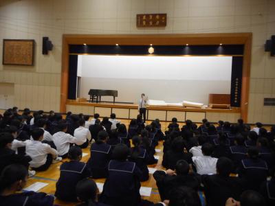 全校集会では、校長先生から「知らない人が校内に入ってきたときに、皆さんが元気に『こんにちは』と声をかけることで、その人に見られているという意識を持たせることができます。皆さんのあいさつは礼儀正しさを示すだけでなく、不審者から身を守るための最初の防御となるのです」というお話がありました。