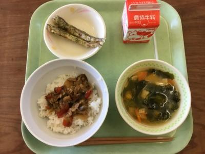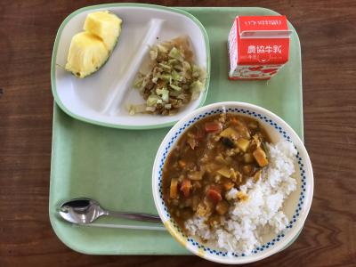 夏野菜には暑さから体を守る栄養がいろいろと含まれています。今日は夏野菜を使ったカレーです。暑さに負けず元気に過ごしましょう。