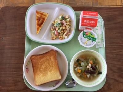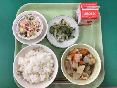 茶碗蒸しは日本伝統料理の一つで,卵とだし汁で卵液を作り,お好みの具材を茶碗に入れて蒸す料理です。今日の給食では,だし汁の代わりに牛乳を使い,洋風のミルク茶碗蒸しにしました。