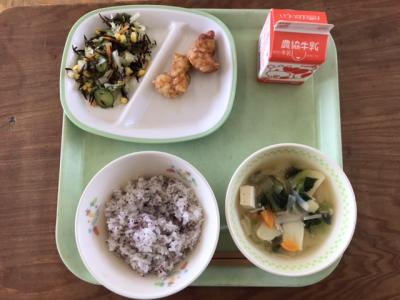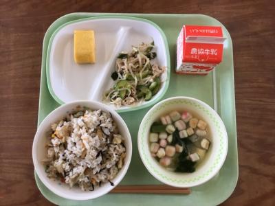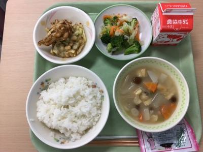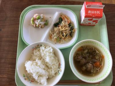 大豆には体を作るタンパク質が肉や魚のようにたくさんふくまれています。今日はカルシウムたっぷりのひじきと一緒によくかむことができるあえ物にしました。