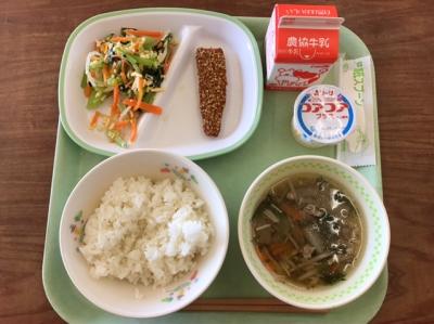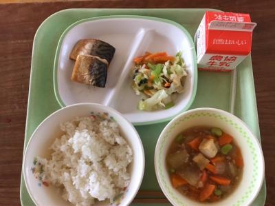 さばは背中が青く光り輝く青魚です。血液をさらさらにする成分や,頭の働きをよくする成分が多く含まれ,私たちの健康を支えるとても優れた食材です。給食では香味焼きにしまし。。