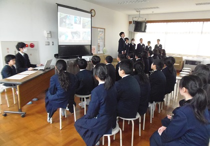 12月12日(水),進学する七尾東部中学校の先生に来ていただき,英語の出前授業をして下さいました。アルファベットの書き方なども教えていただきました。6年生にとっては,中学校への心構えなどよい刺激になったようです。