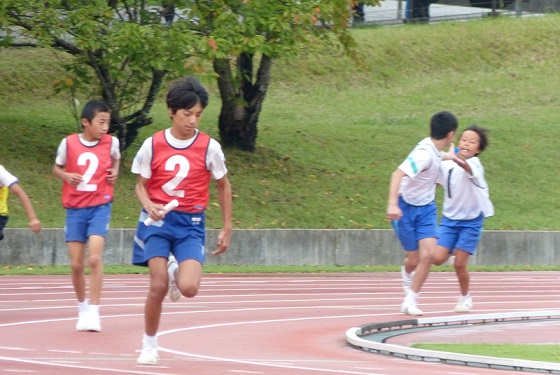 9月29日,雨のため短縮した連合運動会を行いました。男子のリレーでは,市内1位の