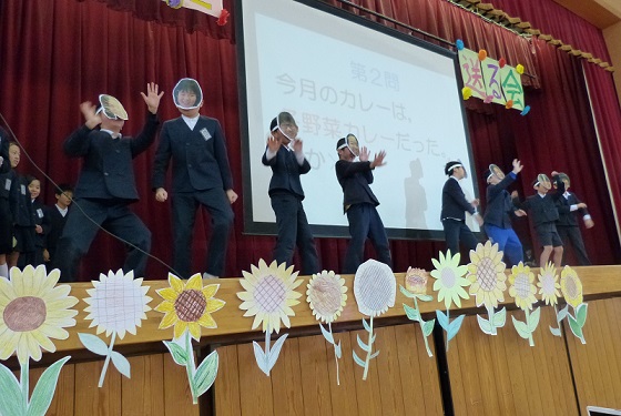 2月26日(金)6年生を送る会をしました。1年生から5年生の出し物,先生方の出し物