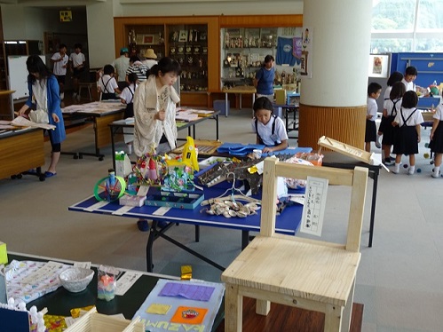 夏休みの課題として取り組んだ,自由研究,工作,手芸をさわやかホールに