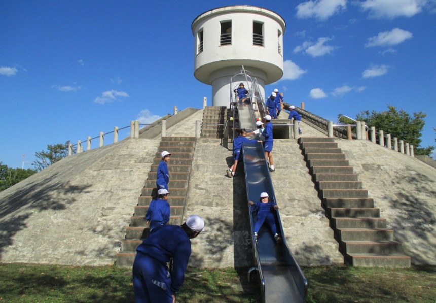 単なる遠足でなく津波発生時の第2避難場所である「希望の丘公園」へ