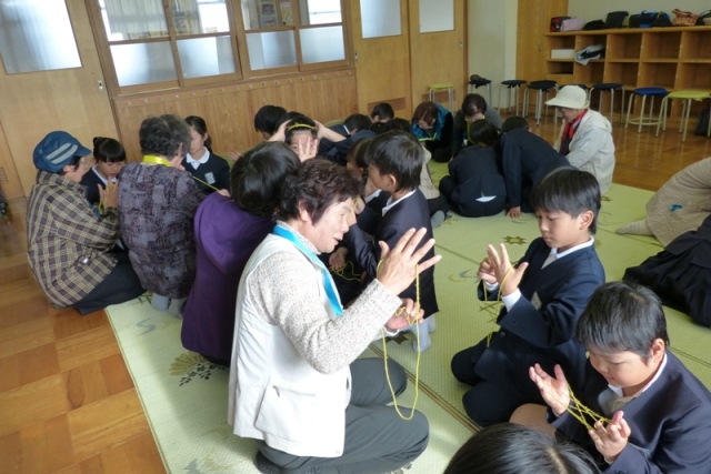 11月18日(火)地域のお年寄り48名が来校し本校児童と昔遊びを