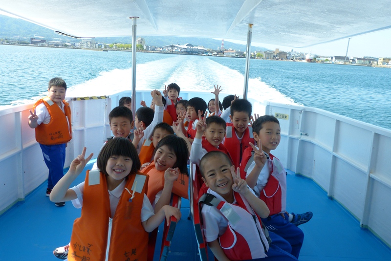5月12日好天のもと,低学年は能登島方面,中学年は輪島方面,高学年は金沢方面に