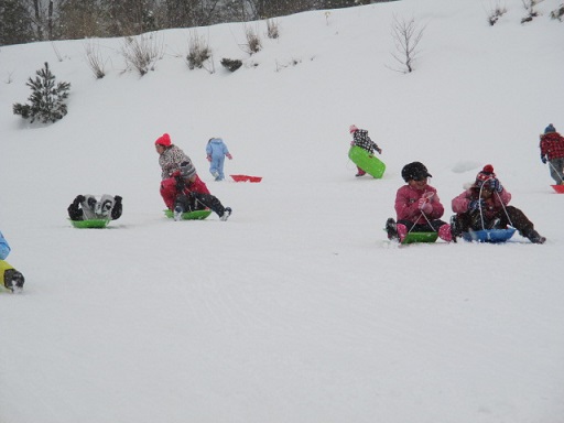 1月22日(金),2,3年生はソリ活動,4,5年生はスキー活動を行ってきました。