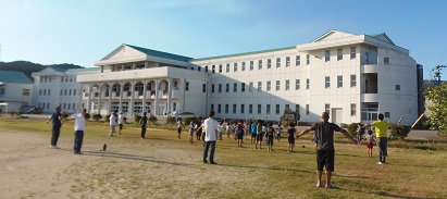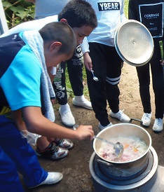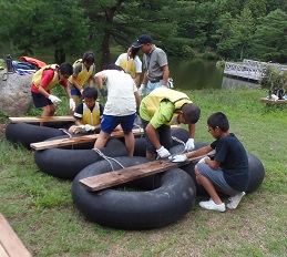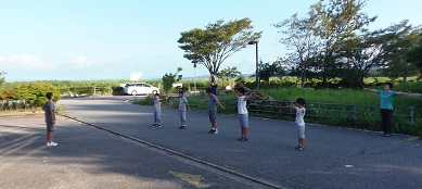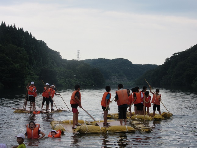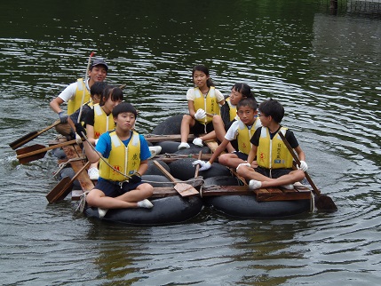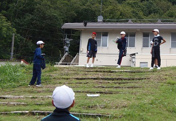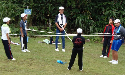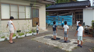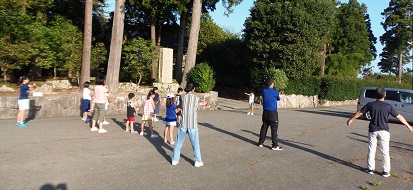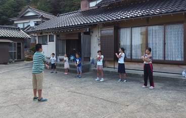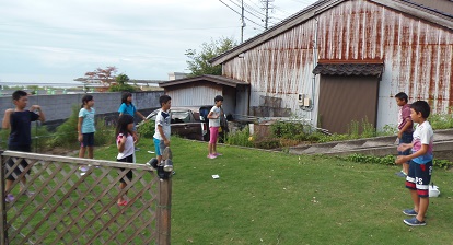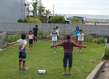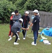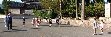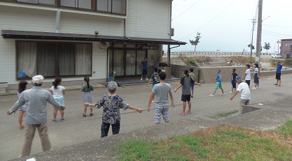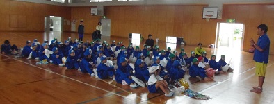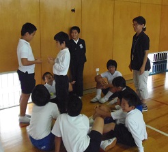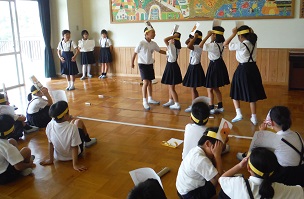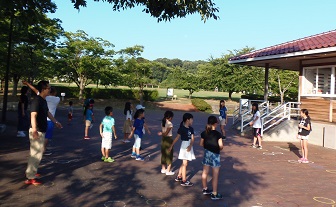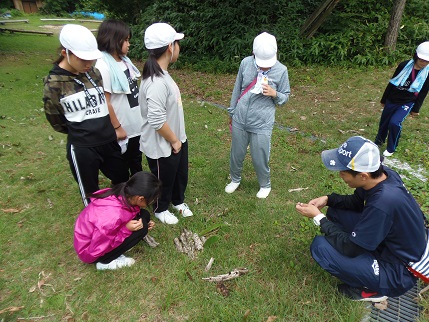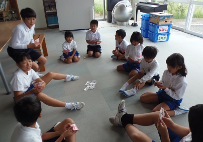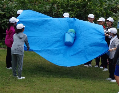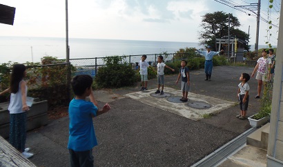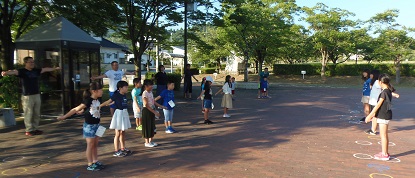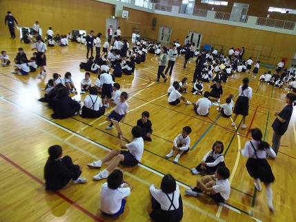 自己紹介の後,ハンカチ落としなどの遊びを班毎にしました。その後,団毎に「震源地ゲーム」をして楽しみました。