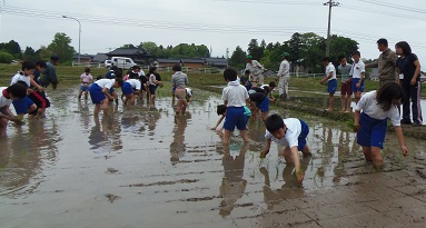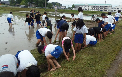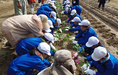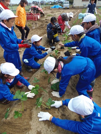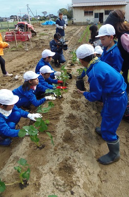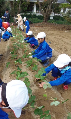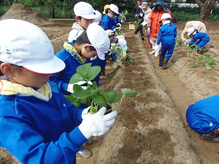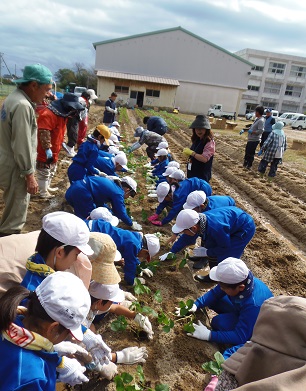 子どもたちは,来年の5月の収穫を楽しみにしながら,心を込めて植えました。
