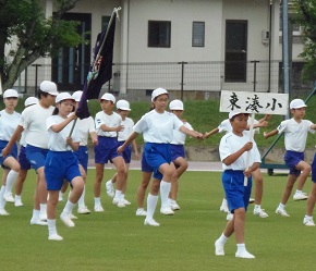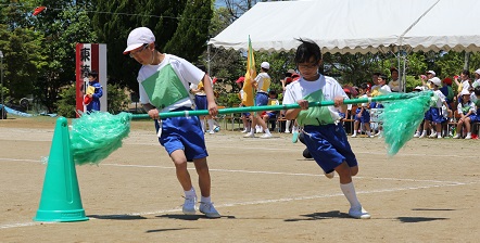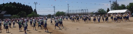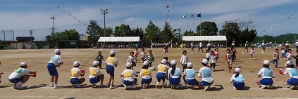 晴天の下,校区が広くなっての初めての運動会が5月30日(土)に