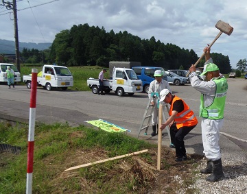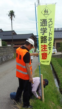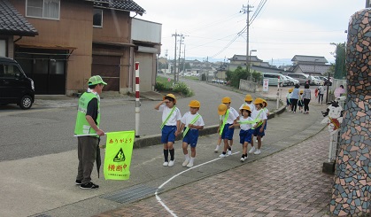地域の皆さんが「あいさつ運動と交通安全指導」