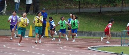 幅跳びや100m走で何人も自己ベストを更新し,リレーにおいても