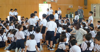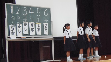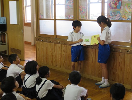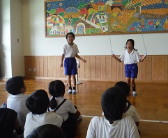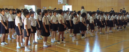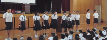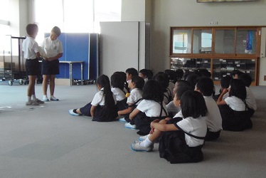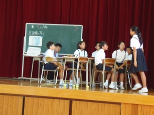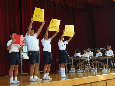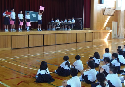 9月3日(月),2学期がスタートしました。始業式の後,6年生の代表が,学習の仕方をステージ上で演じてくれました。発表の仕方や聞き方など解説を入れながらわかりやすく全校児童に知らせました。