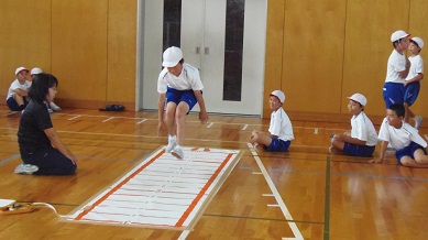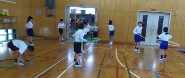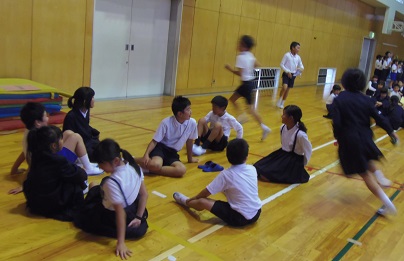 10月3日(水),七尾市立山王小学校体育館で,七尾市小学校10校の内5校の3年生が器械運動交歓会に参加しました。