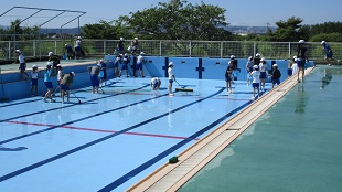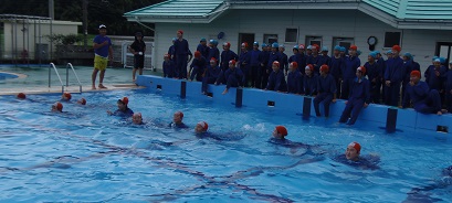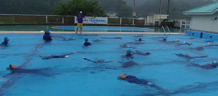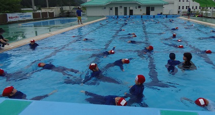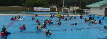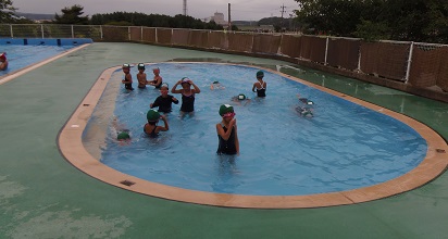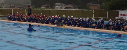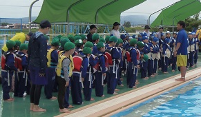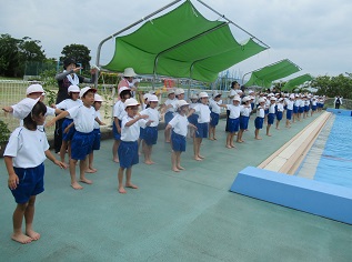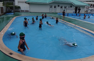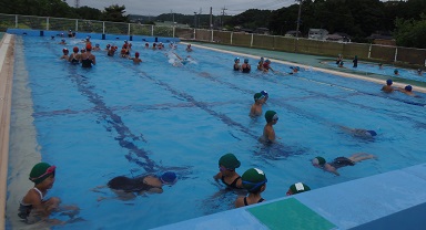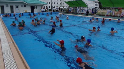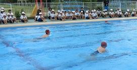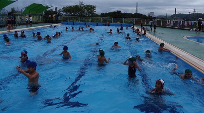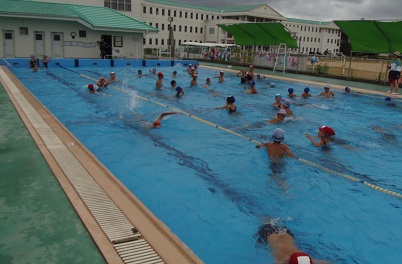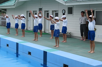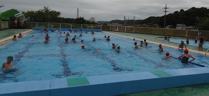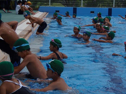 曇り空,水温24度,気温24度のコンディション。低学年から初泳ぎを行いました。8月末までの2ヶ月あまり,めあてをもって運動し,からだを鍛えてほしいものです。
