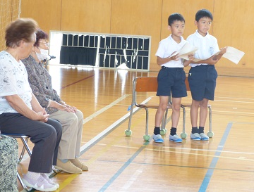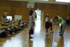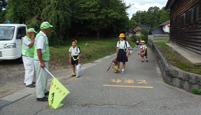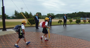 2学期がスタートして1週間経ちましたが,始業式の日,地域の皆さんが,登校する子どもたちを迎えてくださいました。交通安全指導とあいさつ運動をしてくださいました。地域の宝である子どもたちを地域で育てるという意味からも,有り難いものです。これからもよろしくお願いします。