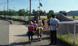 単なる遠足でなく津波発生時の第2避難場所である「希望の丘公園」へ