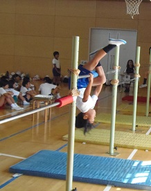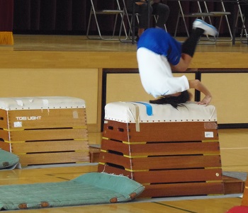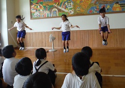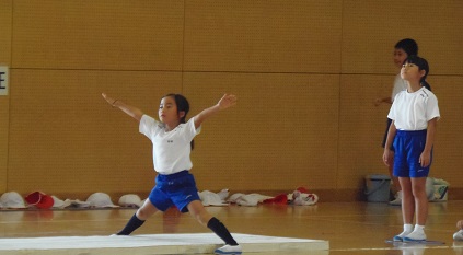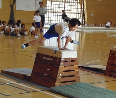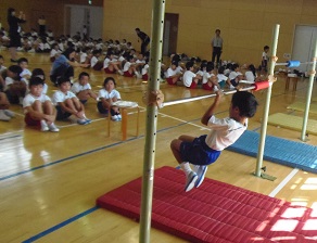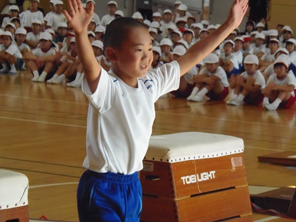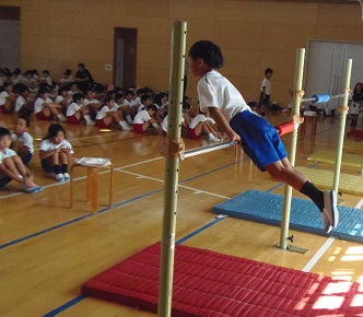 全員が,跳び箱,鉄棒,マットの演技をしました。本校の3年生は,少し緊張していたようでしたが,練習の成果を発揮でき,満足そうでした。他校の3年生の演技に刺激を受けていたようです。このがんばりを,これからの学校生活に生かしてもらいたいものです。