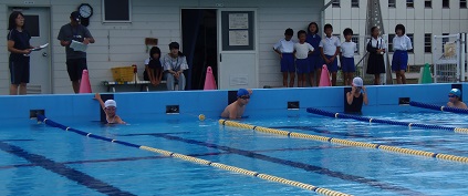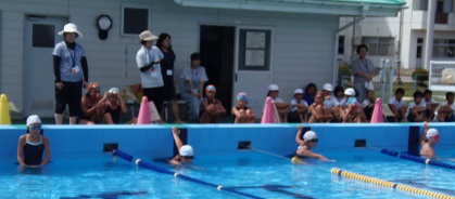 夏休み後半に予定していた4~6年生の校内水泳記録会を,9月4日(火)に行いました。