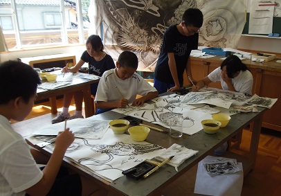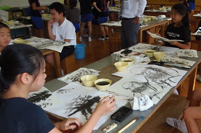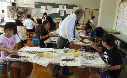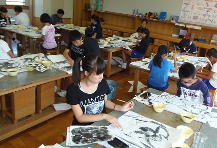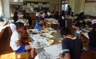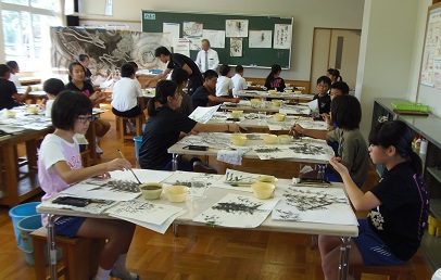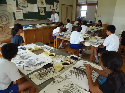 9月18日(火),七尾市文化協会会長の橋元道彦先生を講師にお招きして,昨年度に引き続き6年生対象に「水墨画(墨絵)教室」を開催しました。