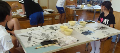 子どもたちは,習字は墨汁を使うので,墨をするのも初めてでした。濃い薄いを意識して,作品を仕上げました。初めてにしては,力作(?)ができたのではないでしょうか。